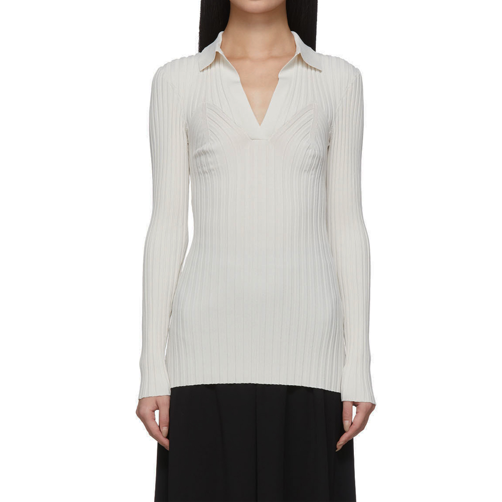 Toteme White Arradon Knit Ribbed Polo Sweater Top