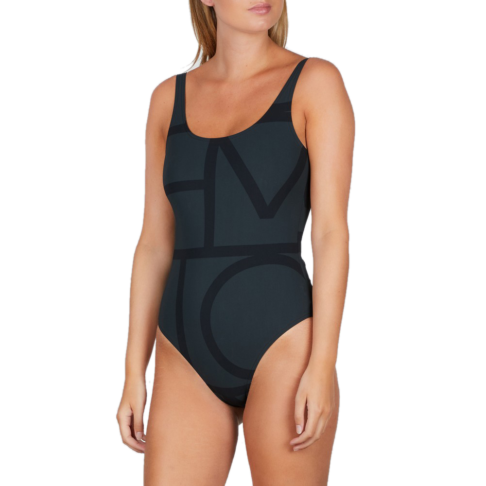 Positano swim suit by Toteme. Classic and timeless design with an oversized monogram print. Tight fit and higher leg cuts. Its made in a Italian fourway-stretch fabric with buit in SPF 50. Each swimsuit has a unique print. The swim suit is unpadded.、