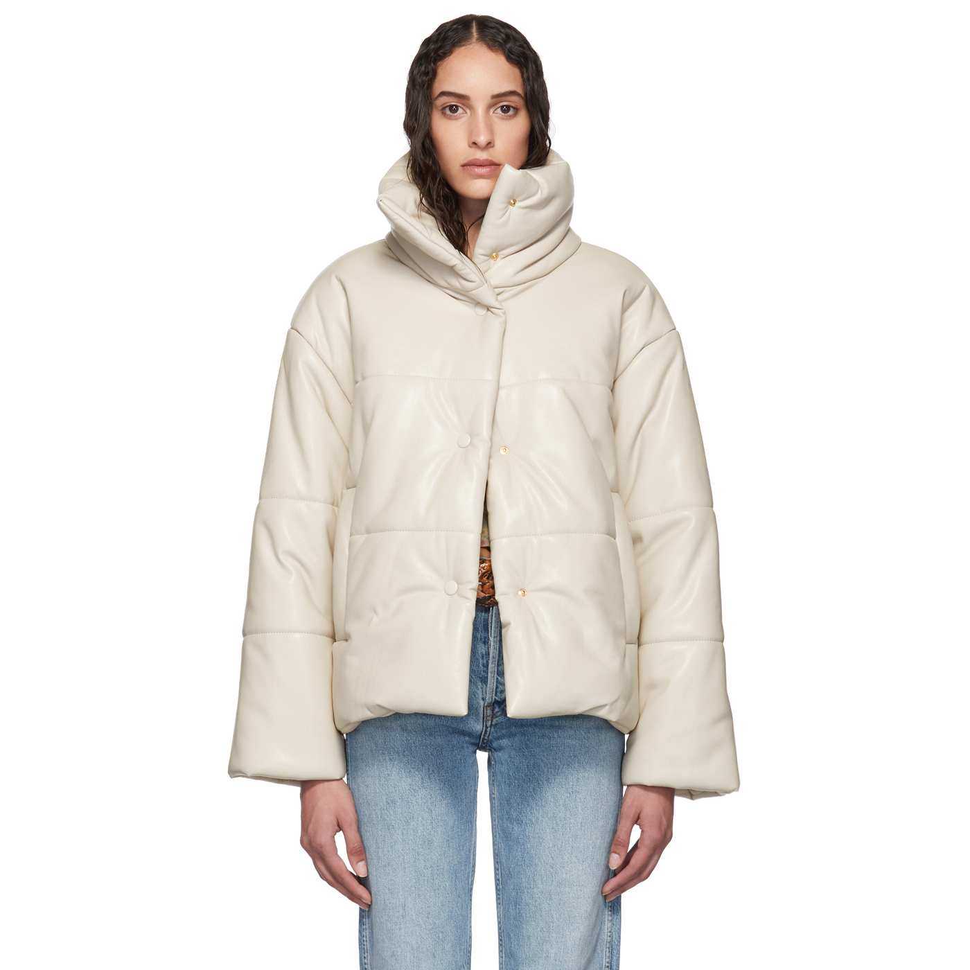 NANUSHKA Cream White Hide Vegan Faux Leather Puffer Jacket