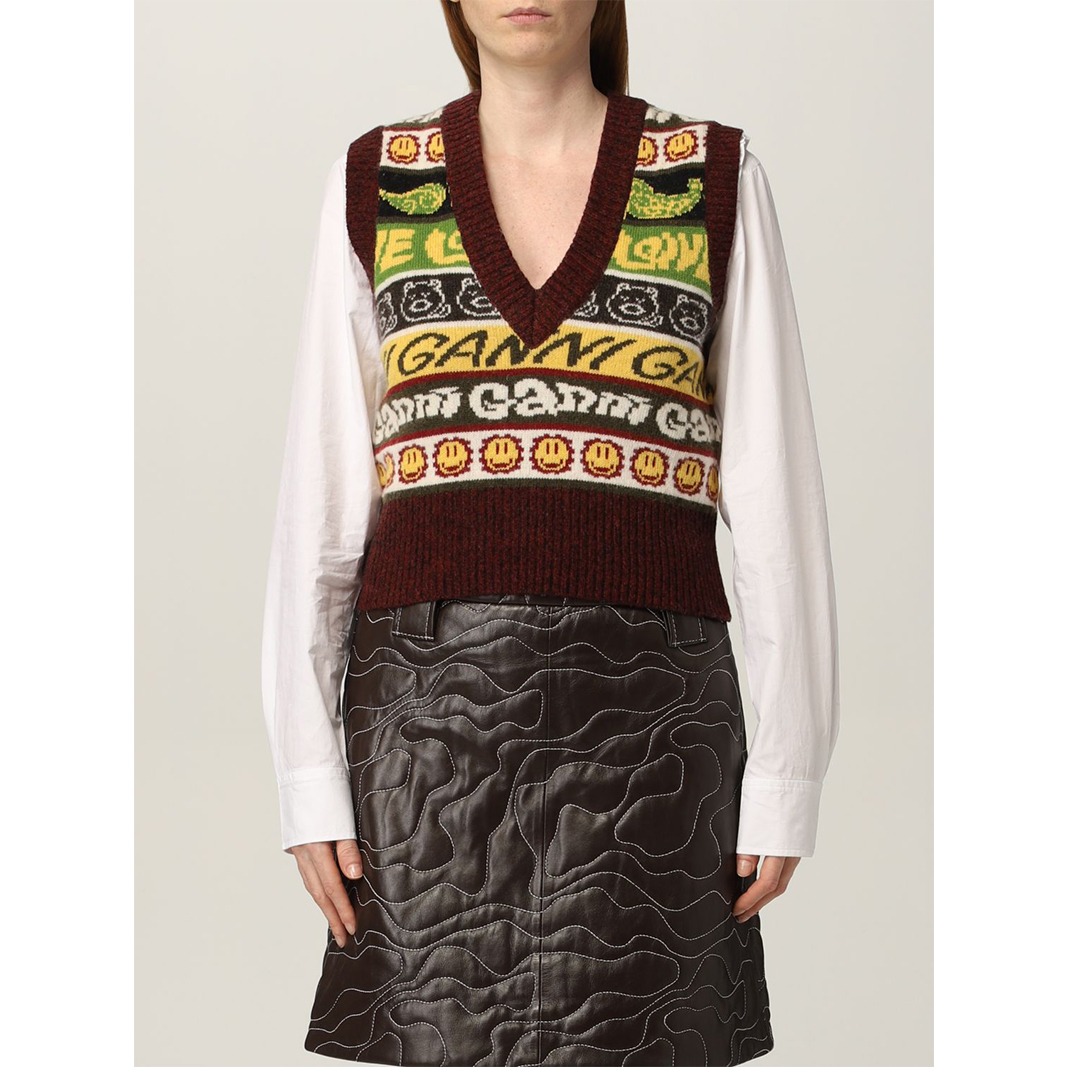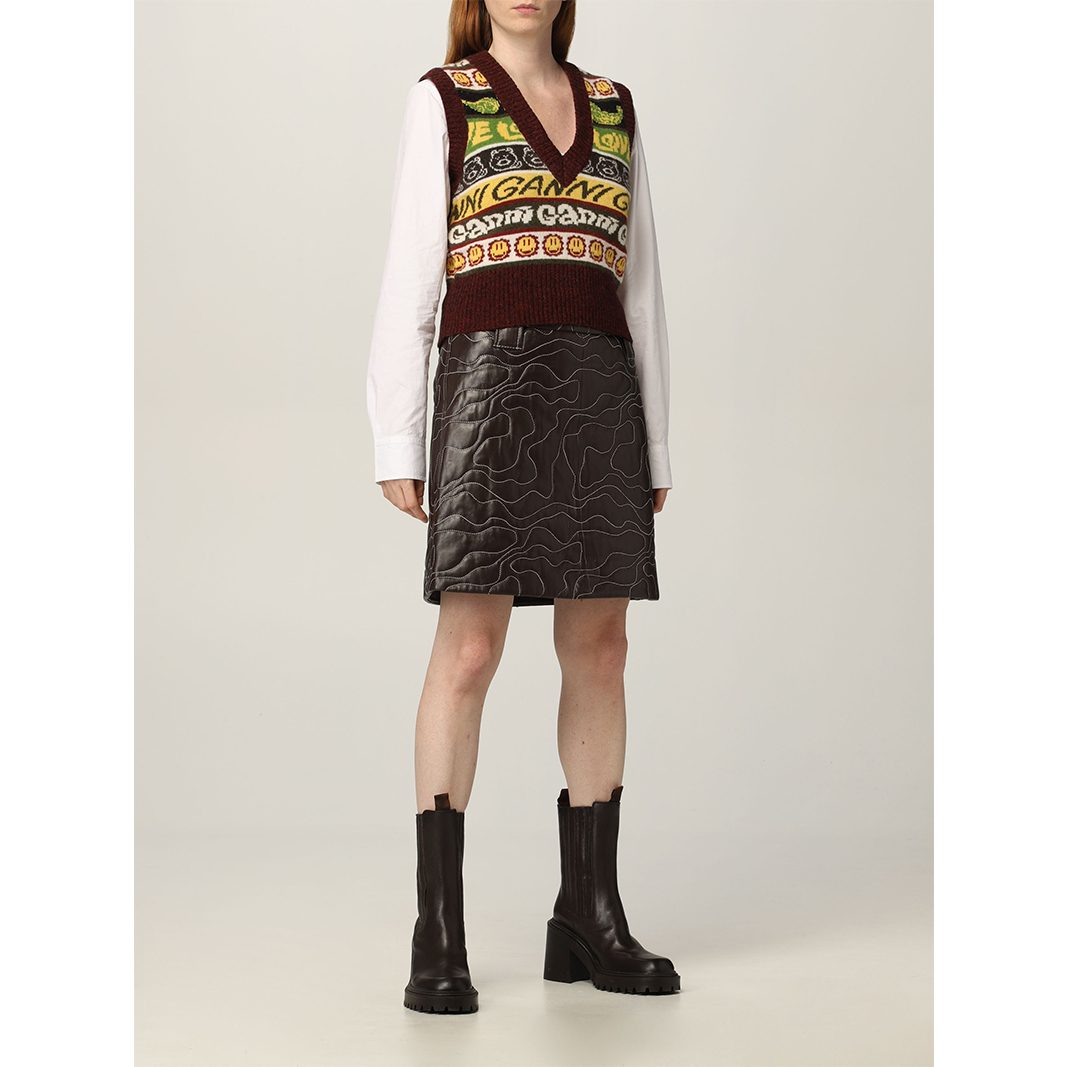 multicolour recycled wool-blend smiley face mixed pattern horizontal stripe pattern V-neck sleeveless ribbed edge Recycled Wool 80%, Polyamide 20%