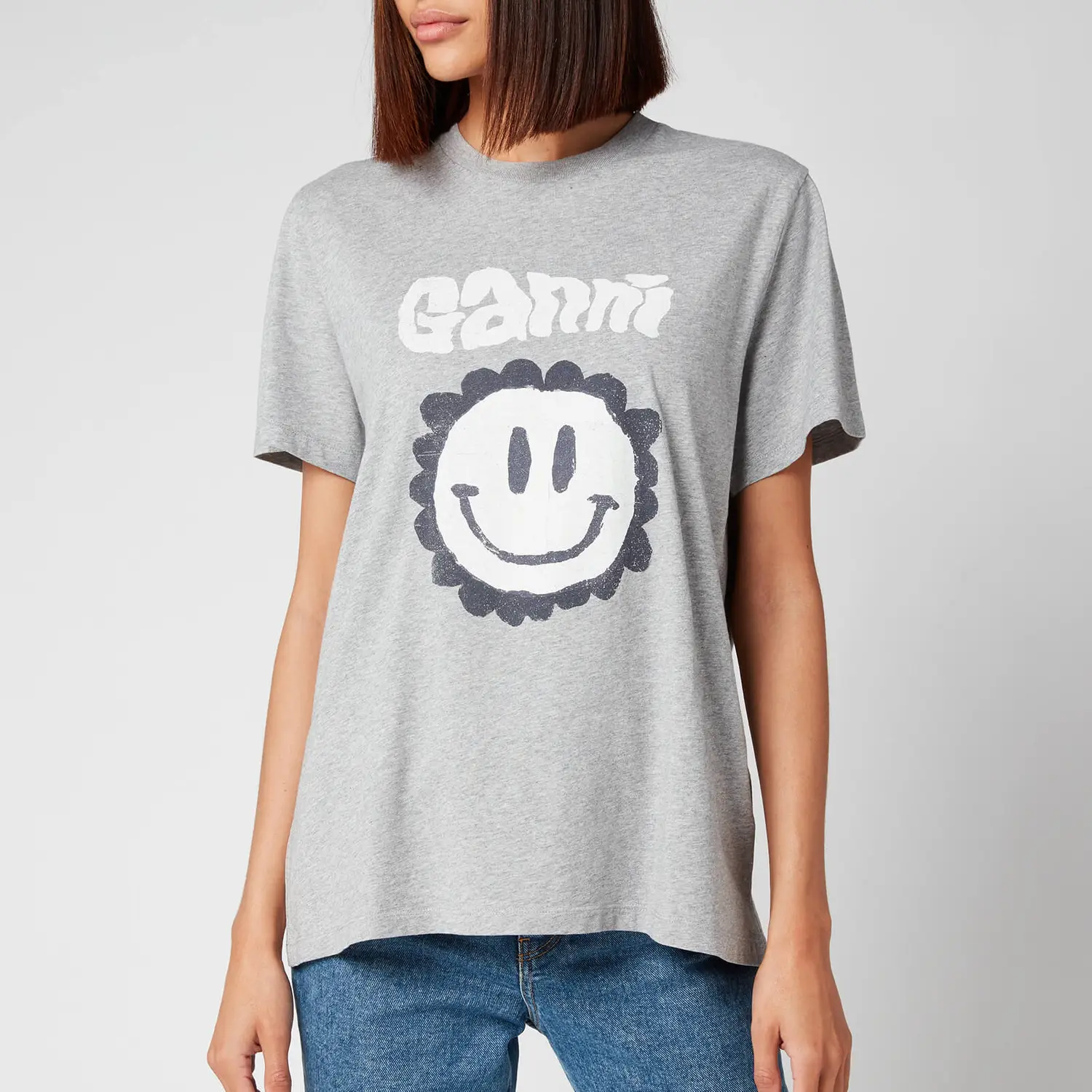 Ganni Cotton Jersey Smily Face T-Shirt in Gray