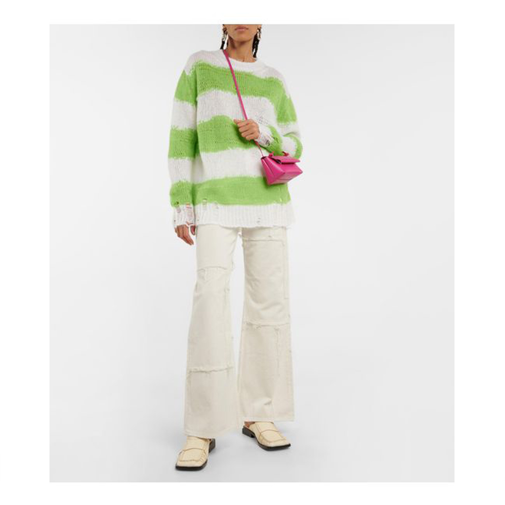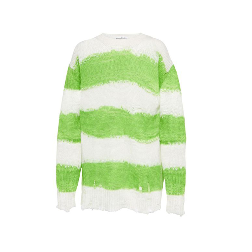 Acne Studios Women's Kalia Green Striped Distressed Sweater White/Fluo Green
