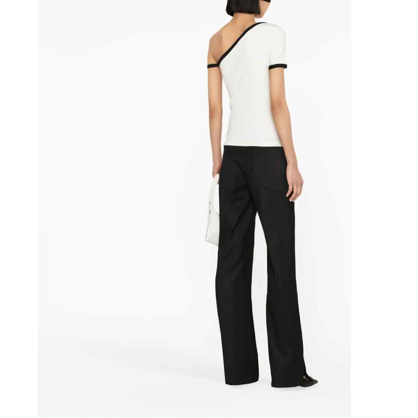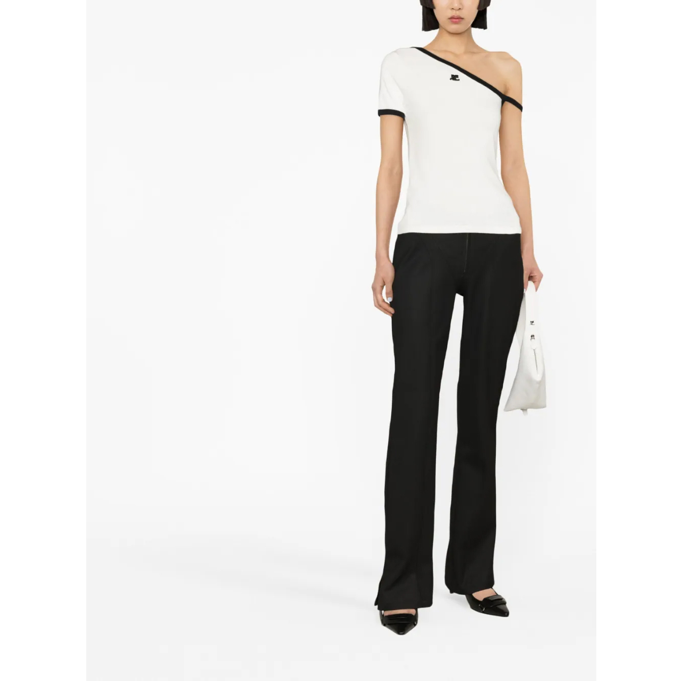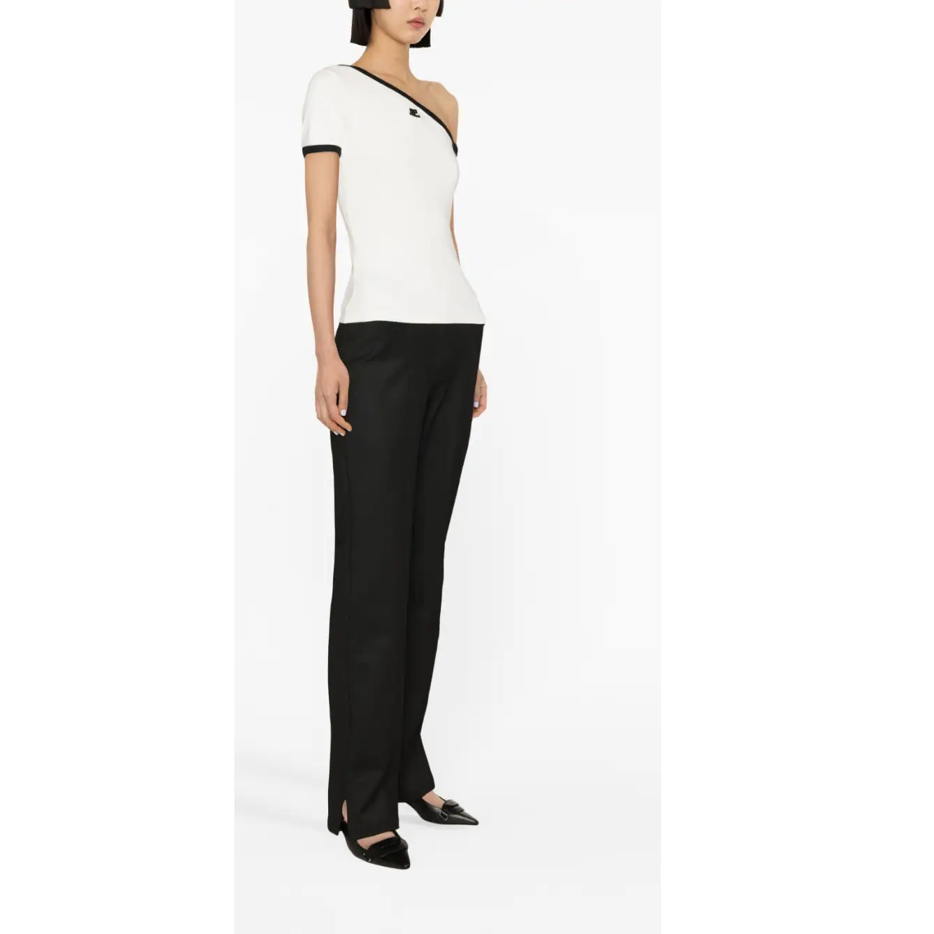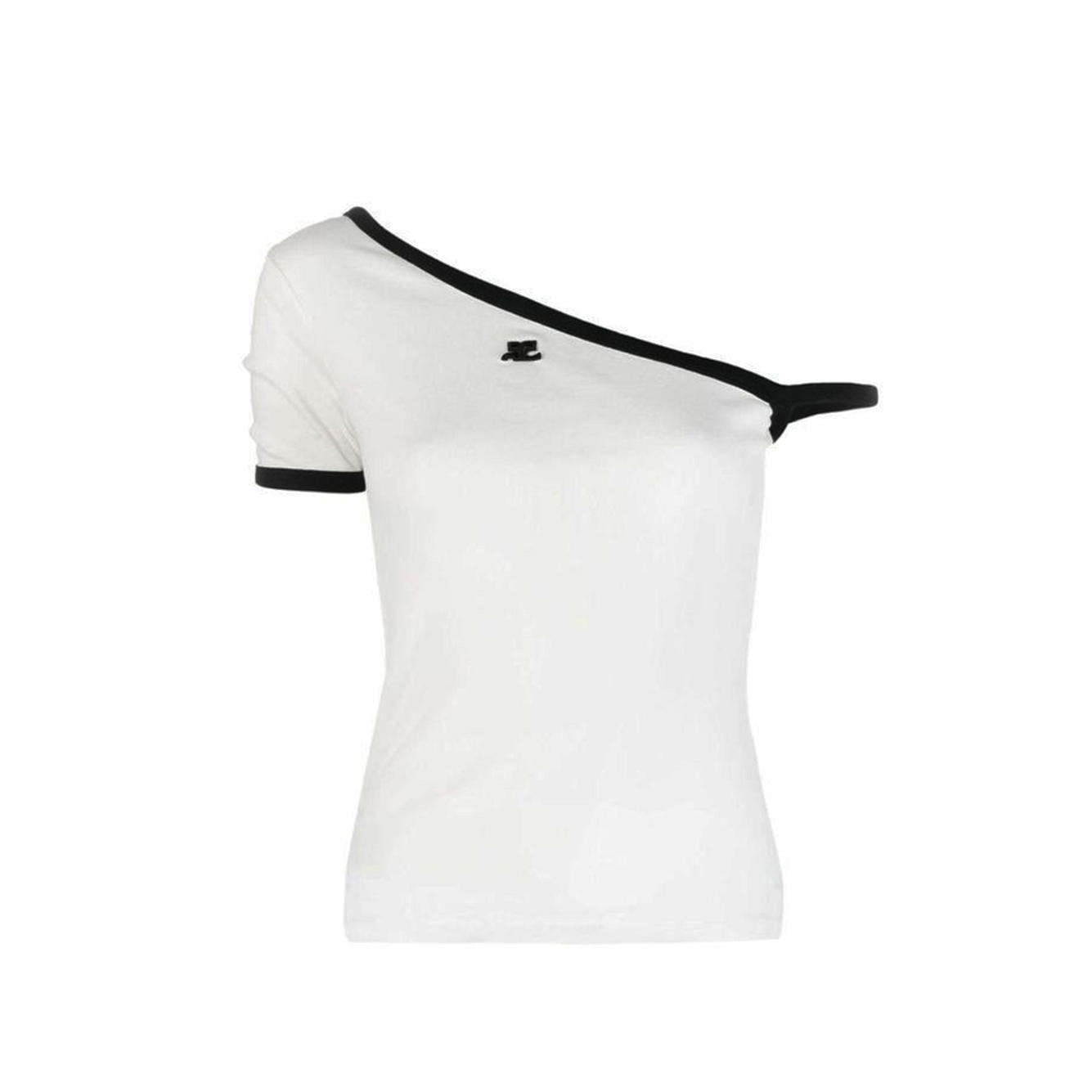 Known for its streamlined and modern silhouettes, Courrèges presents this asymmetric top for SS23. Crafted from cotton, the one-shoulder design features contrast trims along the neckline and cuffs, and is finished with the label's logo at the chest.