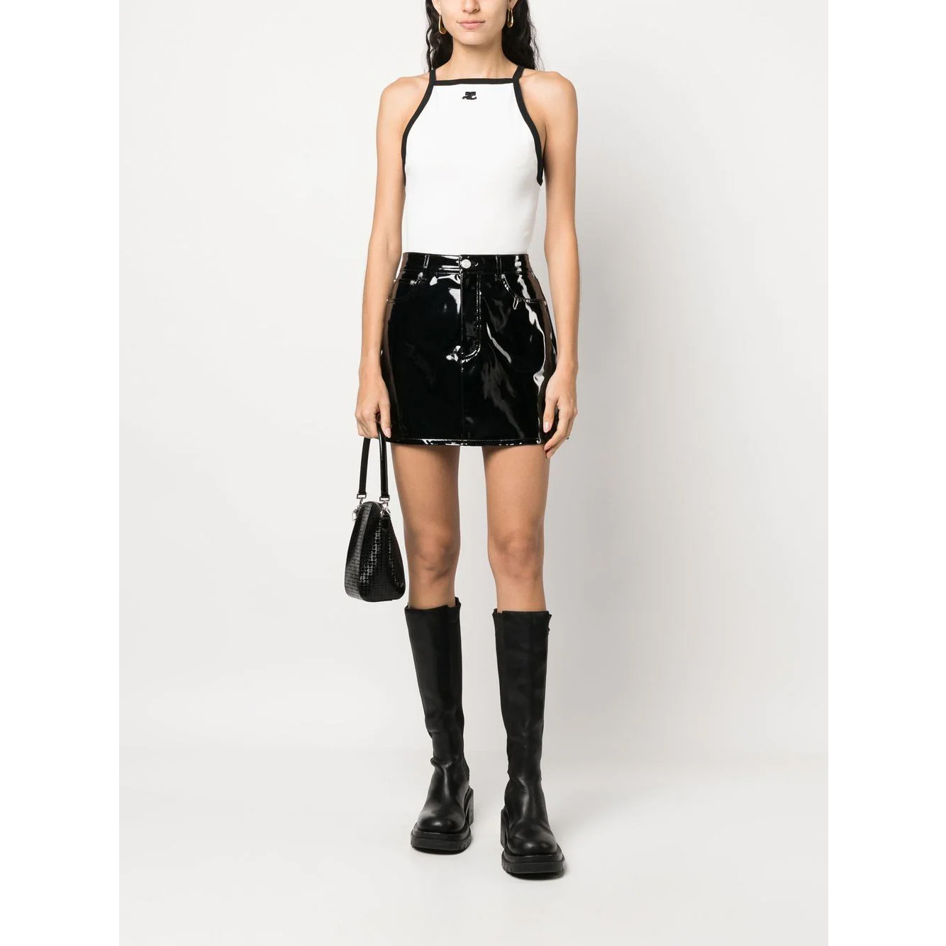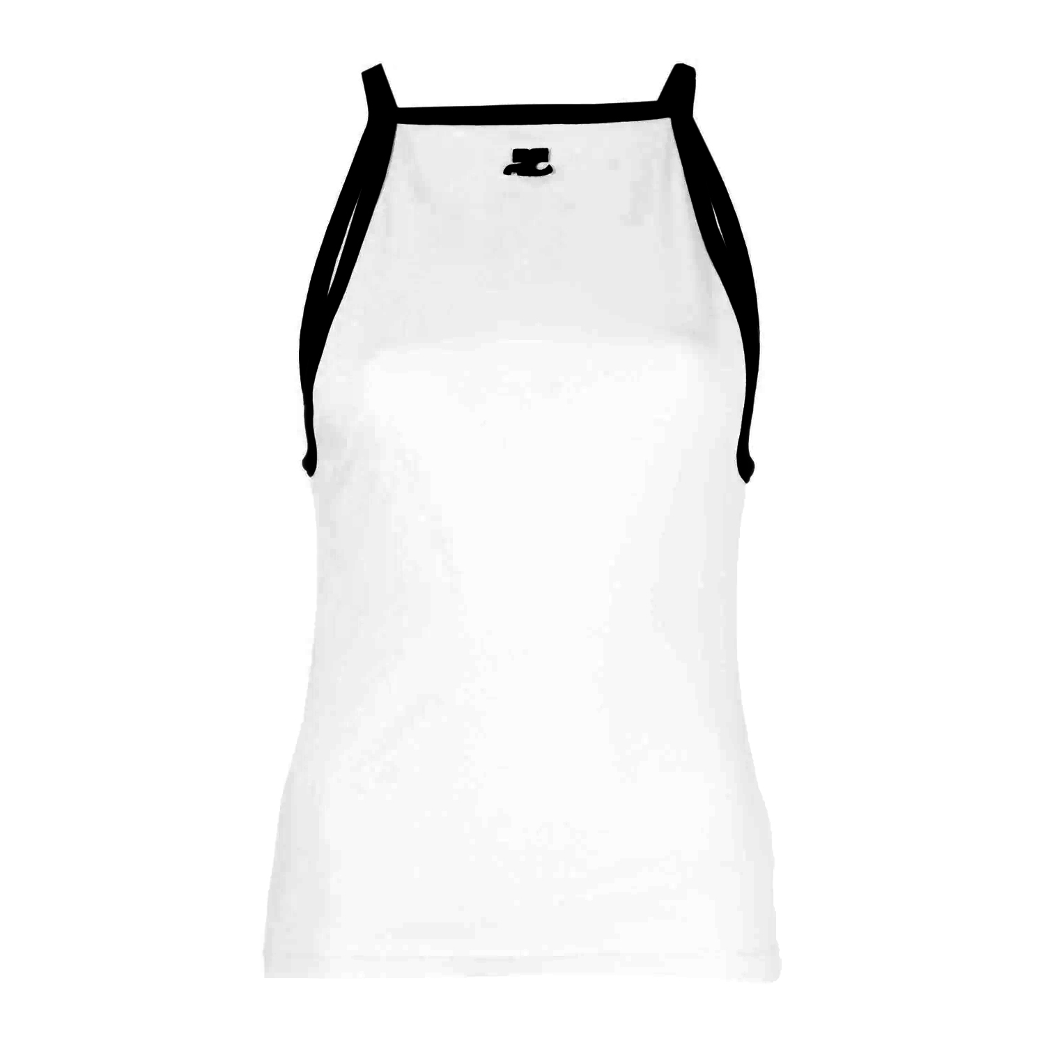 From the French fashion house Courrèges, this tank top is made of cotton with a square neck and thin straps with contrasting edges. Note the iconic AC logo embroidered in black in the centre of the chest. An irresistible piece, perfect for this Spring-Summer.