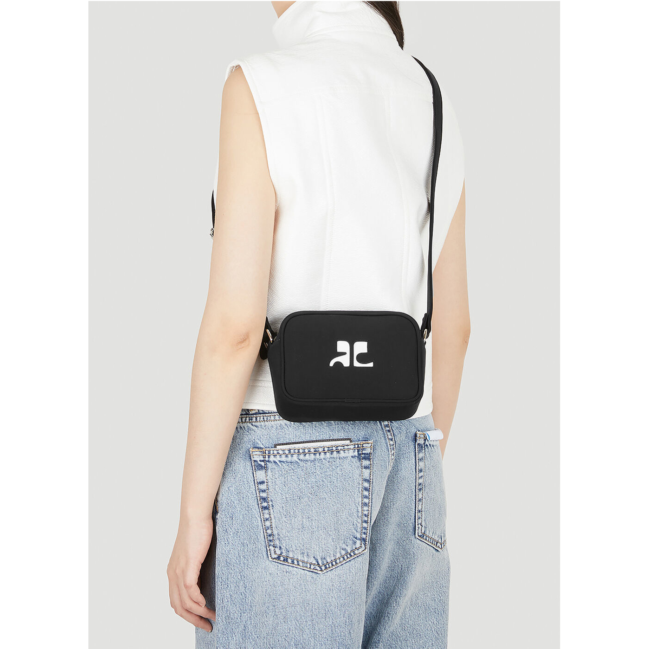 Courrèges Reedition Black Leather Camera Bag