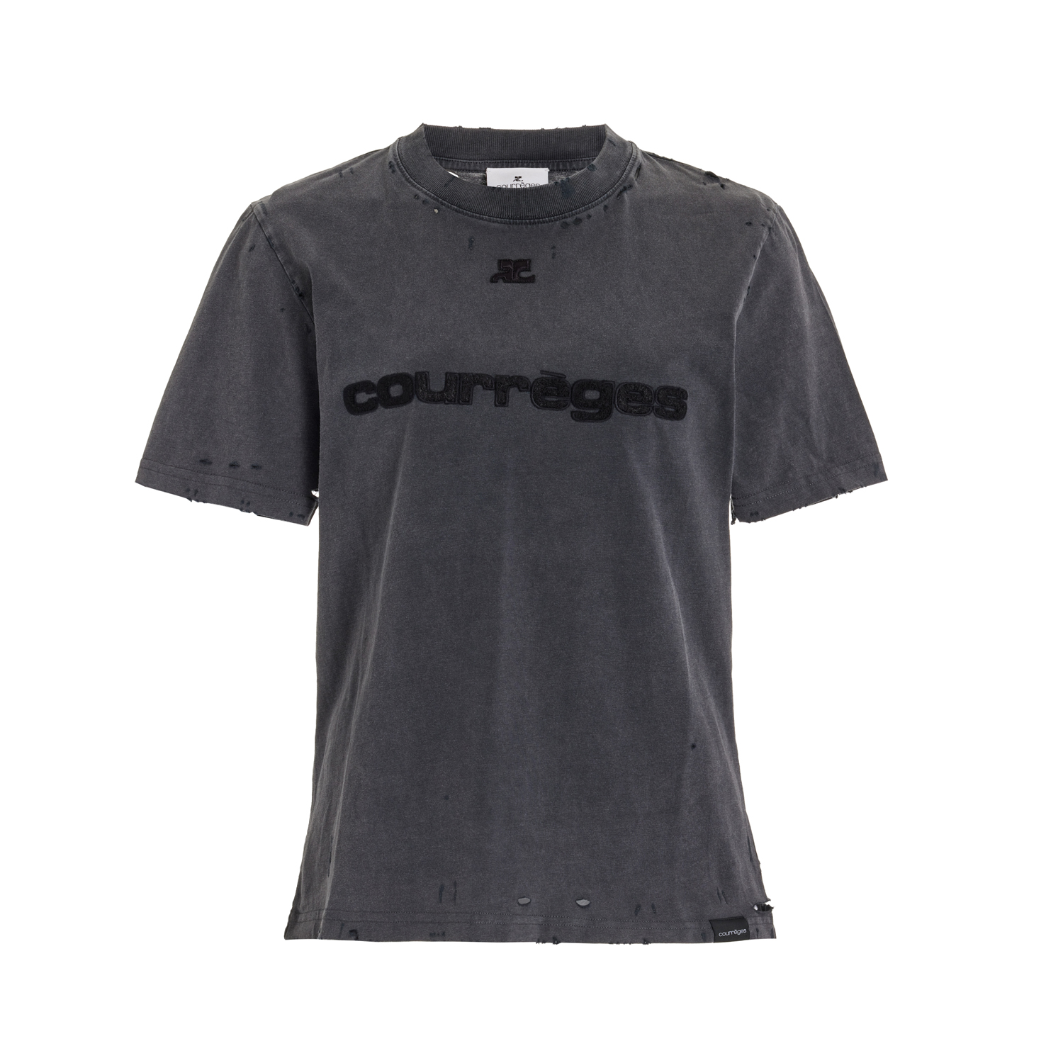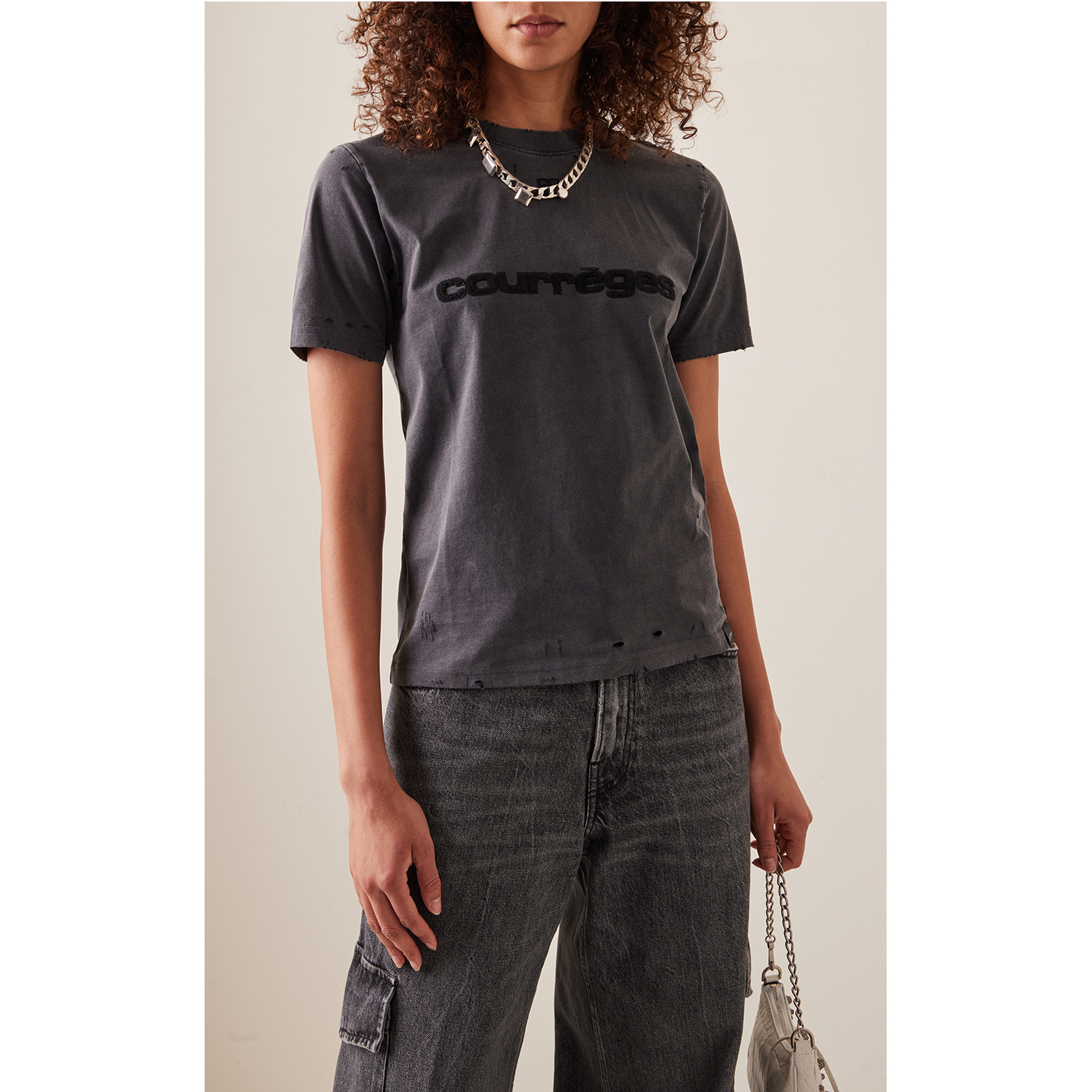 Courrèges Distressed Logo Cotton Jersey T-Shirt