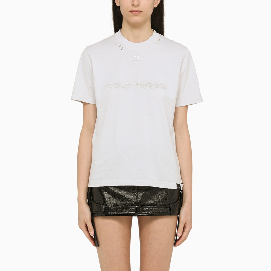 Courrèges Distressed Logo White Cotton Jersey T-Shirt