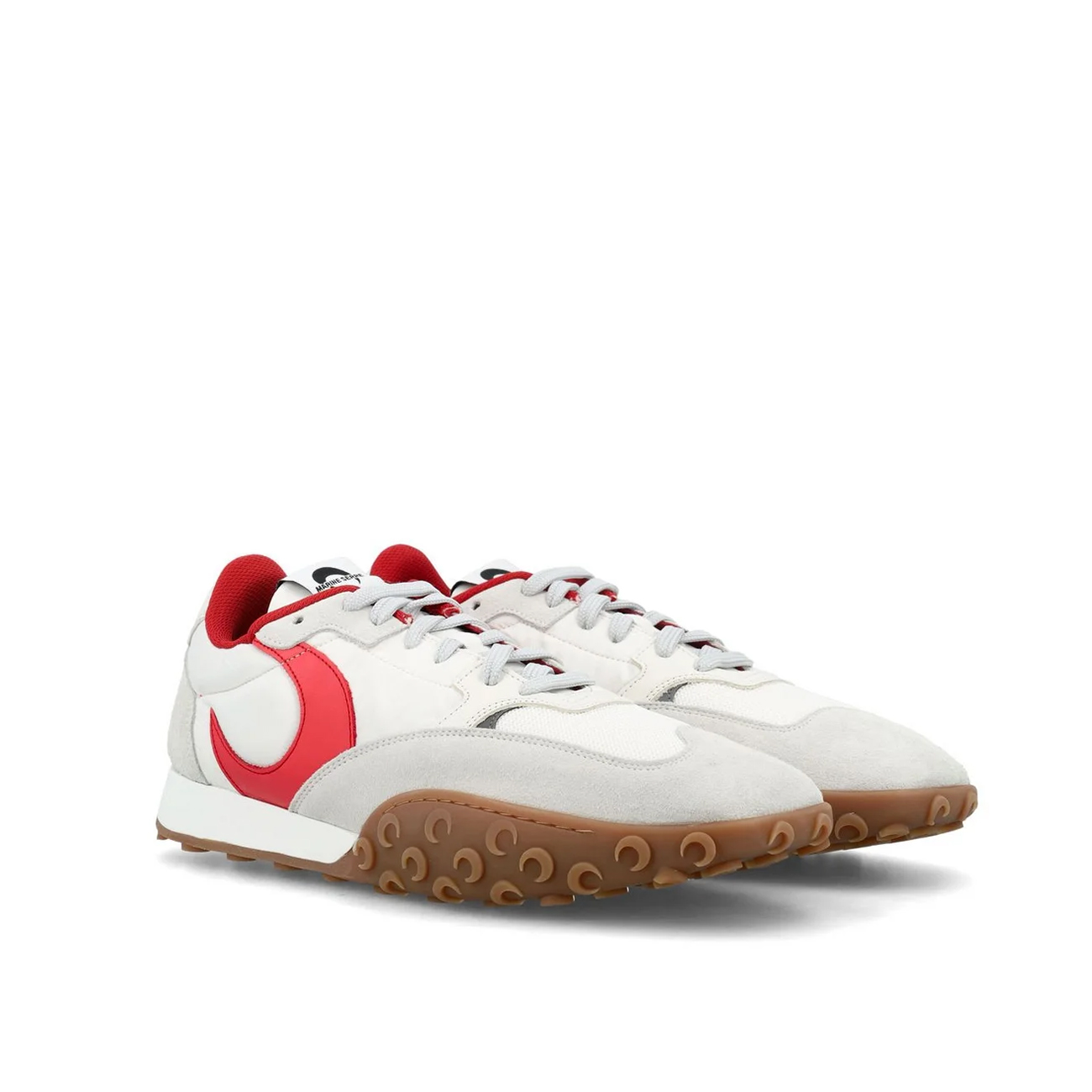 Drawing inspiration from vintage running shoes, Marine Serre designed the Moonwalk sneakers in a paneled style with smooth leather. The practical pair showcases the label's signature crescent motifs on the sides and all around the rubber soles.